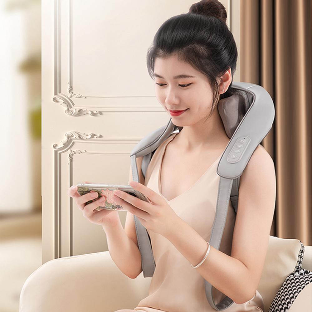 جهاز التدليك يوفر تجربة استرخاء مريحة للرقبة والكتفين، مما يساعد على تخفيف التوتر والإجهاد.