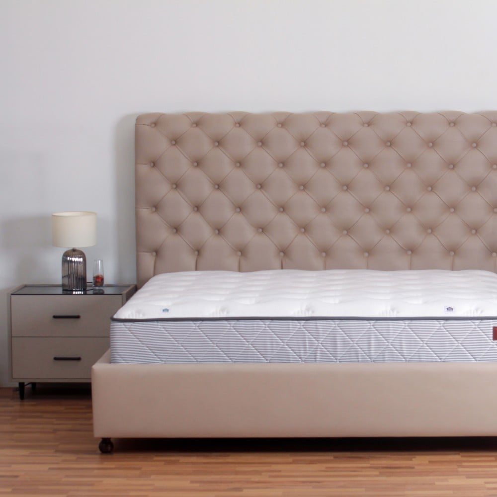 سرير رويال وان تجربة فريده في راحة ارتفاع القاعدة 30سم ارتفاع الارجل 9سم ارتفاع لوحة الرأس 140سم