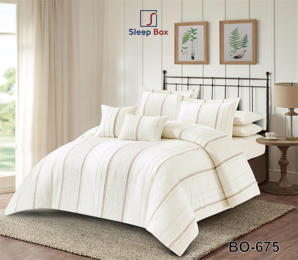 - سواء كنت تبحث عن الرفاهية أو الراحة المطلقة، فإن طقم لحاف Sleep Box بحجم King Size هو الخيار الأمثل لك.دلل نفسك بتجربة نوم هادئة ومريحة تضيف لمسة من الفخامة إلى غرفة نومك كل ليلة.